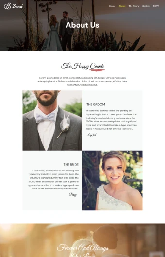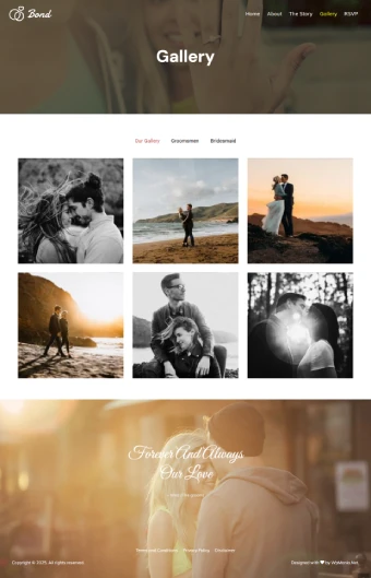 Bond – wedding website templates wordpress is a fully responsive premium theme, which means it will look great on any device, whether it’s a desktop, laptop, tablet, or smartphone. Your guests will be able to view your wedding website from anywhere, at any time, and it will always look amazing.