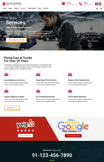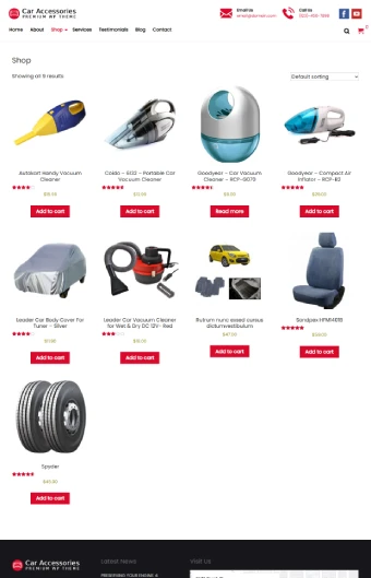 Showcase your auto parts and accessories with a sleek, high-performing website using the Car Accessories WordPress Theme—modern, responsive, and designed to make your products stand out. Perfect for car accessory shops, auto parts stores, and automotive brands ready to grow online.