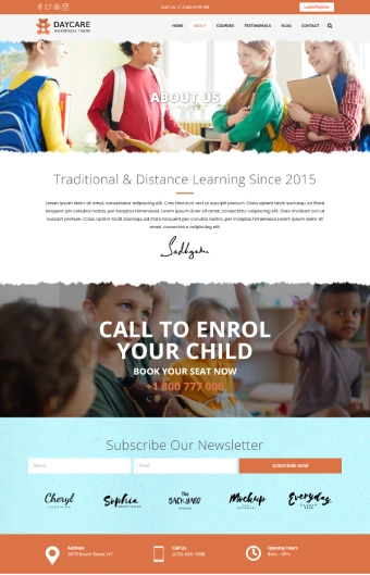 • You run a daycare, kindergarten, or early education program, this theme helps you present your services with warmth, build confidence with parents, and create an online space that feels just as caring as your real-world classroom.