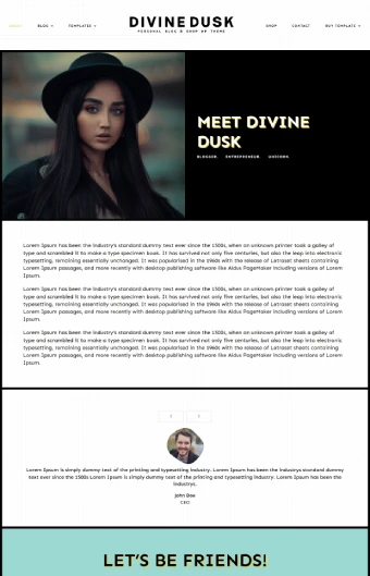 • You’re growing a blog, launching a shop, or doing both at once, Devine Dusk helps you share your voice, showcase your products, and connect with customers who love what you create.