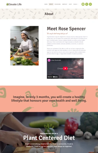 • you focus on nutrition planning, weight management, or holistic wellness, this theme helps you highlight your expertise, share knowledge, and build meaningful connections with people seeking support on their health journey.