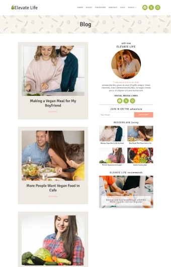 Give your wellness brand a fresh, professional presence with the Elevate Life WordPress Theme—crafted for dietitians, nutritionists, and health coaches who want a clean, modern website that inspires trust and supports client growth.