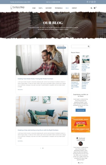 Furniture Store WordPress Template Home Page