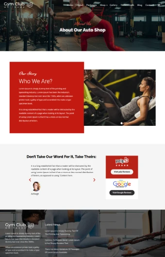 Gym Club WordPress Template Home Page