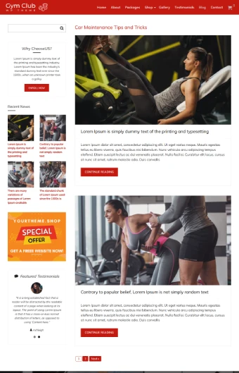 Gym Club WordPress- Website Theme