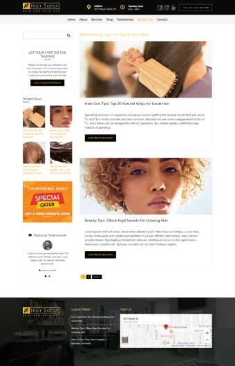 Hair Salon Pro WordPress Template Home Page