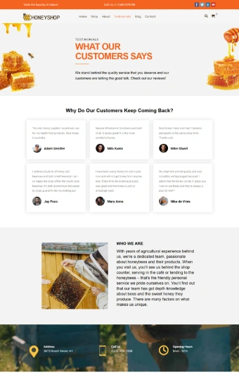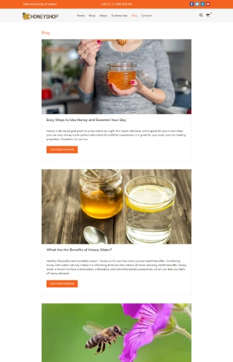• You sell honey, handcrafted goods, or natural wellness items, this theme helps you highlight your purity, connect with customers, and build a brand that feels authentic and inviting.