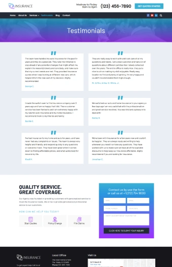 With responsive design, simple customization, SEO optimization, and polished layouts, you can create a site that looks great on any device and makes it easy for clients to explore your policies, request quotes, and connect with your team.