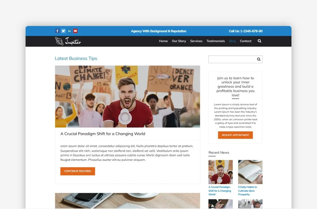 Jupiter WordPress Template Home Page